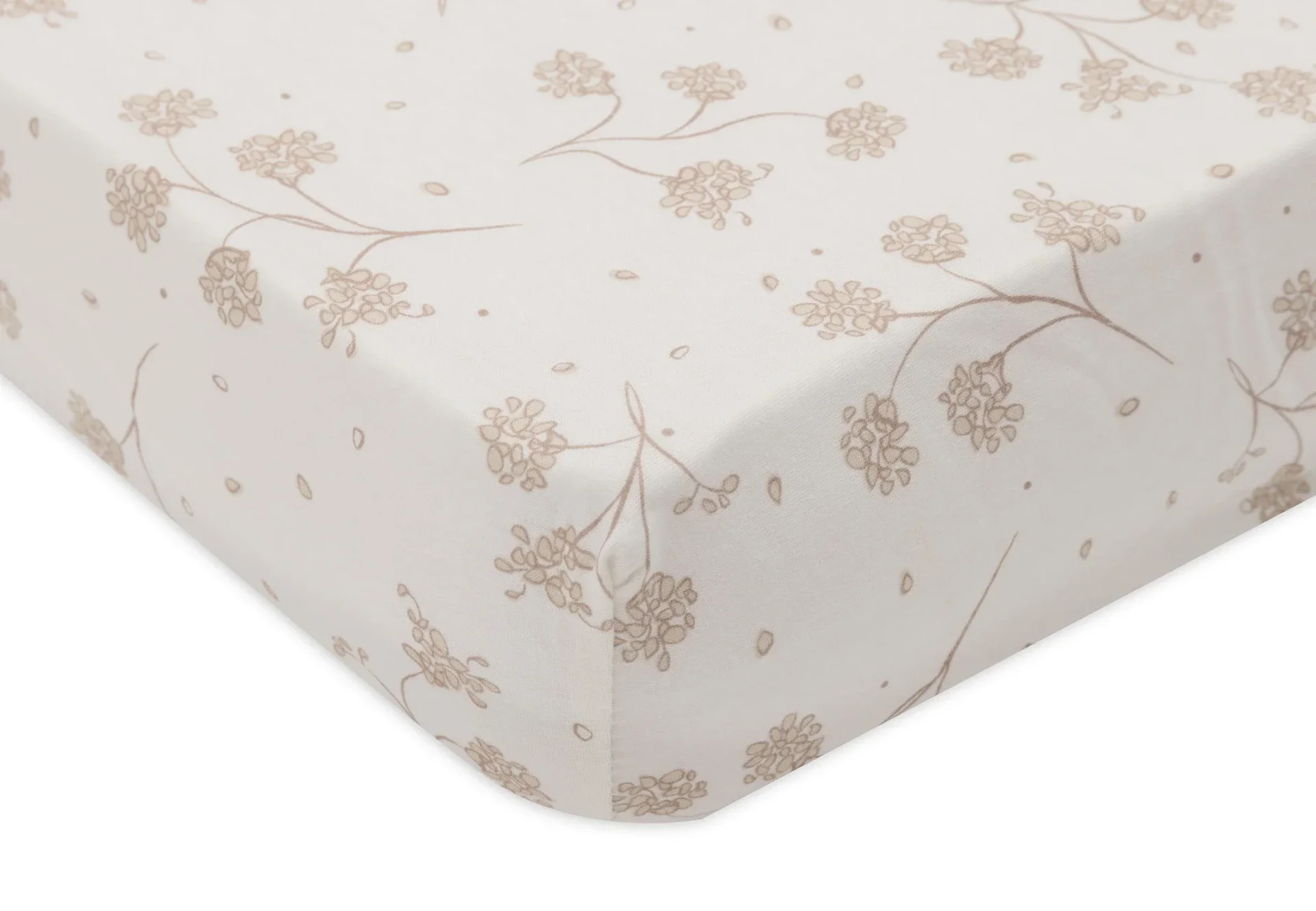 Laat je kleintje heerlijk wegdromen op dit zachte jersey hoeslaken. De Leafy Dreams print met speelse blaadjes geeft het bedje een knusse en frisse uitstraling. Door de fijne, rekbare stof sluit het hoeslaken mooi aan om het matras en voelt het heerlijk zacht aan. Dit hoeslaken is perfect te combineren met ons Ruffle lakentje! Verkrijgbaar in de maten 40/50x80/90 cm, 60x120 cm en 70/75x140/150 cm, zodat je altijd de juiste maat hebt voor het matras van je kleintje. Dankzij de elastische hoeken blijft het hoeslaken goed zitten en creëer je in een handomdraai een knus bedje.
