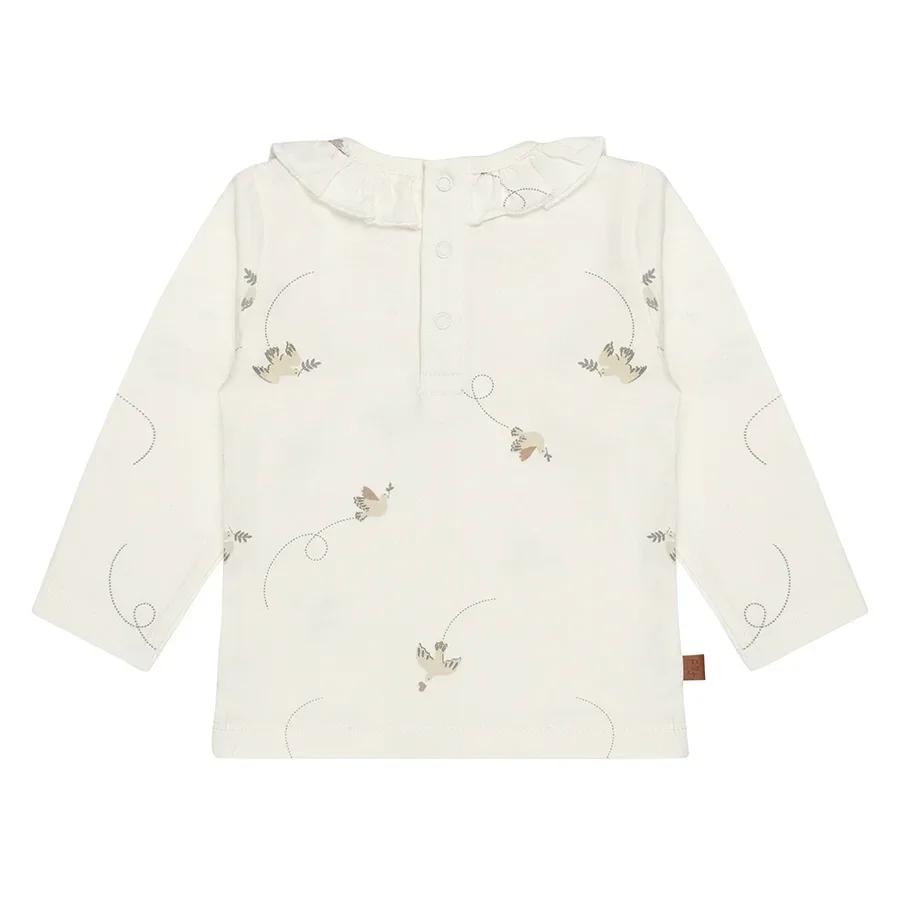 Deze charmante top met lange mouwen is een zachte essential met een zoete twist. Met een all-over vogelprint en een subtiel geplooide kraag geeft hij een vleugje speelsheid aan je dagelijkse outfit.